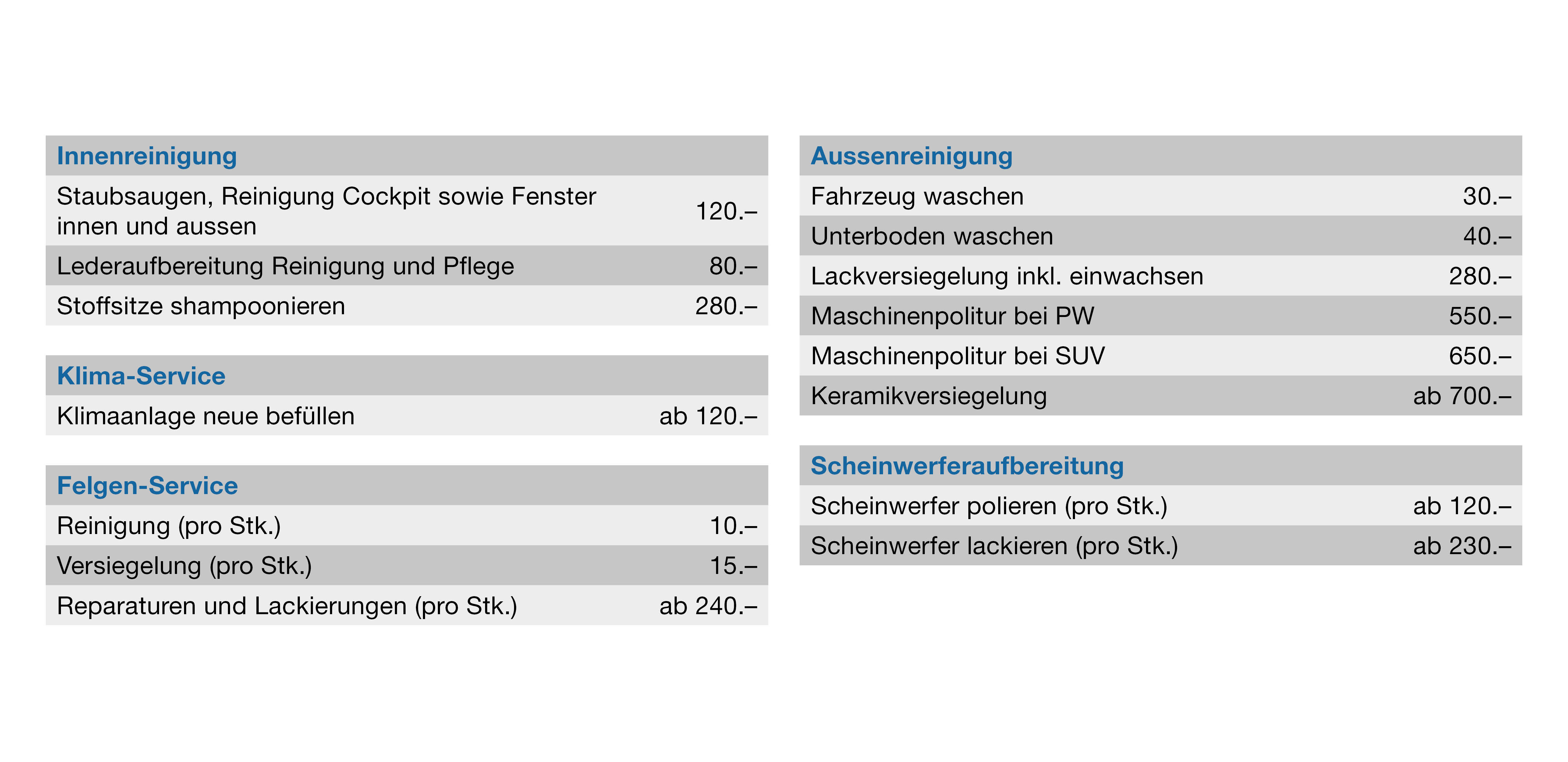 Gönnen Sie Ihrem Auto eine professionelle Reinigung und bringen Sie es wieder zum Strahlen. Mit unserer Frühlingsaktion profitieren Sie bis am 31. Mai 2026 von attraktiven Konditionen auf unsere Reinigungs- und Pflegeangebote.