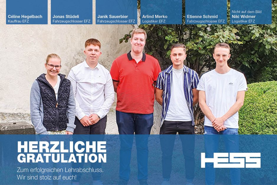 Wer eine Lehre bei HESS erfolgreich abschliesst, erhält die Möglichkeit seine ersten Berufserfahrungen nach der Ausbildung hier zu sammeln. Von den sechs Lehrabgänger und Abgängerinnen können wir nun vier junge Fachkräfte weiterhin im Unternehmen am Standort Bellach beschäftigen.An dieser Stelle bedanken wir uns auch bei unseren Berufsbildner*innen und Lehrlingsverantwortlichen für ihre Bemühungen rund um die Ausbildung unserer Lernenden.Jetzt für eine Lehrstellen ab 2022 bewerben